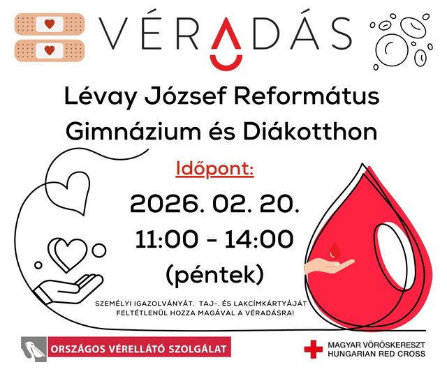 A Magyar Vöröskereszt B.-A.-Z. Vármegyei Szervezete 2026. február 20-án 11:00–14:00 között az Imateremben véradást tart!